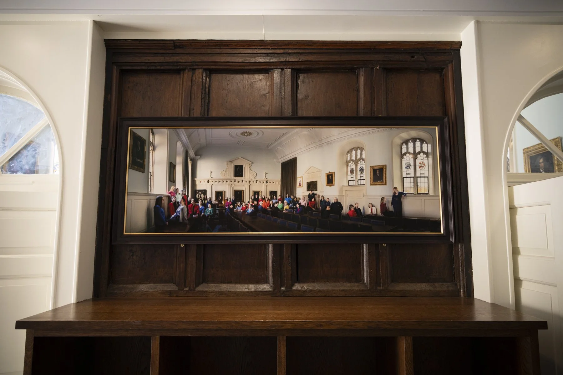 I was commissioned to make this group portrait of all the women of Trinity College, Oxford in their newly refurbished dining hall. It was great fun to gather everyone together in their bright clothes and make this picture. The final image is a combination of many many files. I like to think of it as digital painting. The print is 170cm wide and now hanging outside the dining hall in the college.