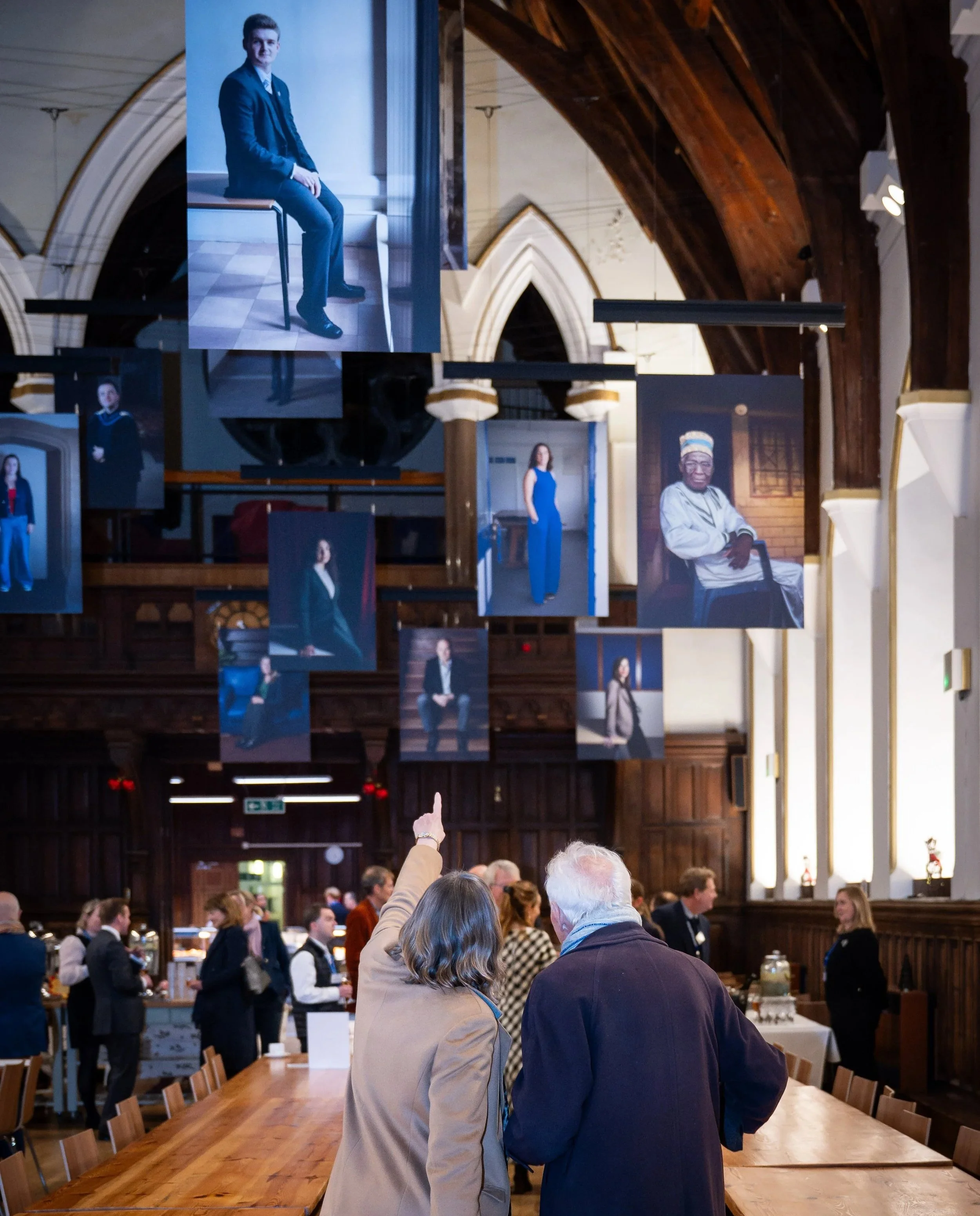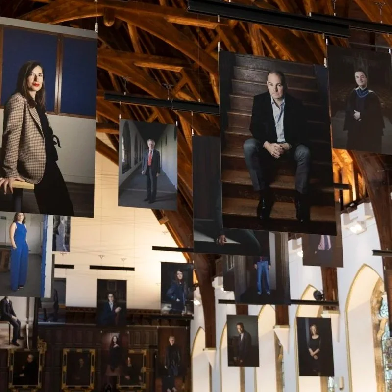 I was thrilled to be able to work with Original Field Architects, Outback Rigging and Genesis Imaging again to create an installation at Lancing College, Sussex, to commemorate their 175th anniversary. The school asked for nominations from their community of alumni, students and staff for people who are making a difference, and I made portraits of the 28 most popular nominees. The portraits really pop out against the backdrop of the painted portraits of former head masters and founders of the college.